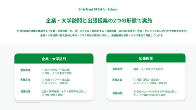 「Girls Meet STEM for School」は、女子生徒が自分の興味関心を見つけるきっかけとして非常に有効なプログラムだと感じる。費用負担がなく、企業・大学との接点をつくりやすい点も魅力である。ぜひ全国の中学校・高等学校で活用が広がってほしいと感じた。