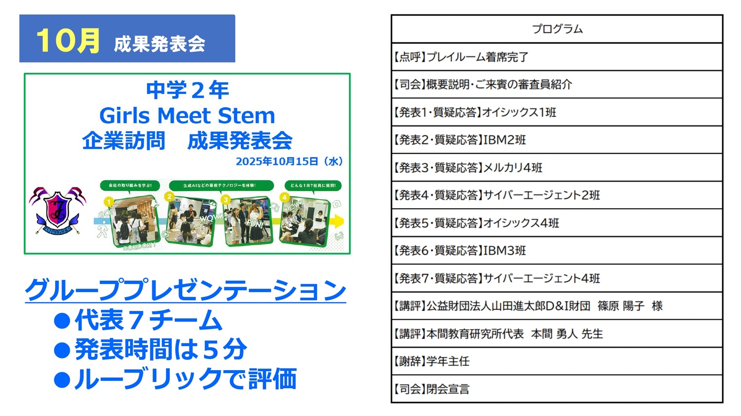 • 10月:成果発表会